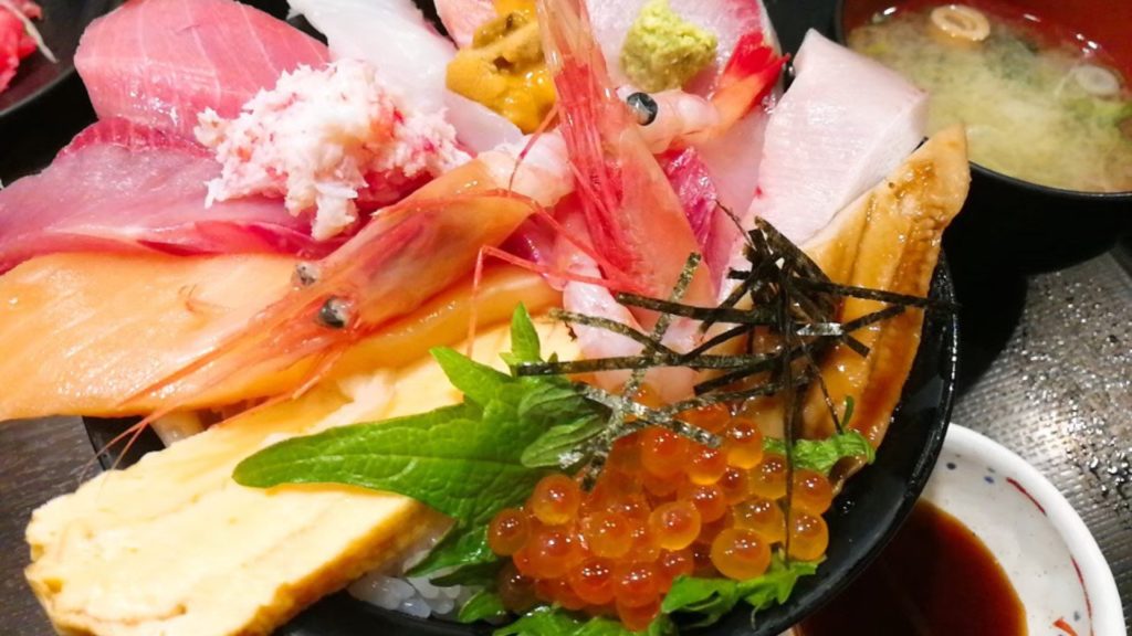マグロの中落ち定食が有名なじもの亭だけど、海鮮丼ももちろんある。当初はマグロの中落ち定食を二つ頼むつもりだったけれど、後ろに待つ人がいたから一つは譲ることにした。結果的にこの選択は正解だった。マグロの中落ち定食が二つだったら間違いなく食べきれていない。