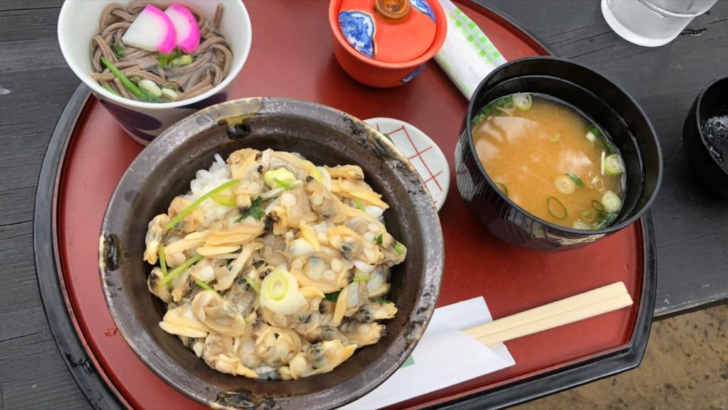 注文したのは名物のあさり丼。運ばれてきたあさり丼は想像していたよりもしっかりした量。あさりの身がたくさん入っていて、観光地の雑な料理ではないちゃんとした名物料理だった。歩いたあとの昼食としてちょうどよくて、あさりを満喫することができた。