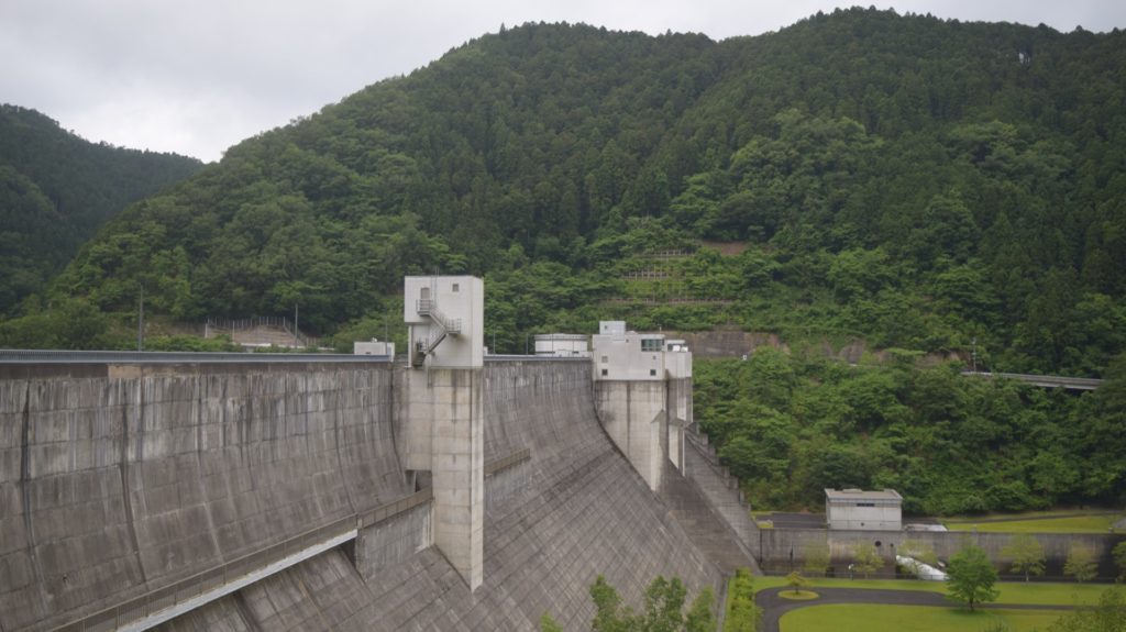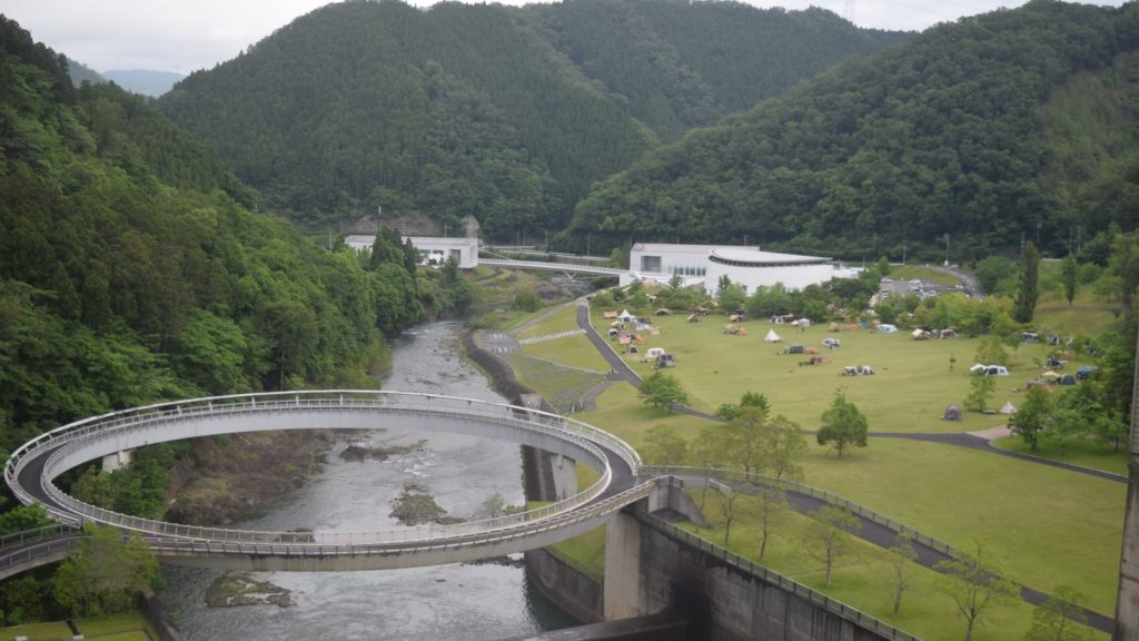 ダムの下にはキャンプ場や道の駅があり、休日には利用者の姿も見られる。今回は犬連れだったから資料館や道の駅の建物内には入っていない。麓は今や一大キャンプ地となっているから、今後は犬連れキャンプを楽しむこともあるかもしれない。