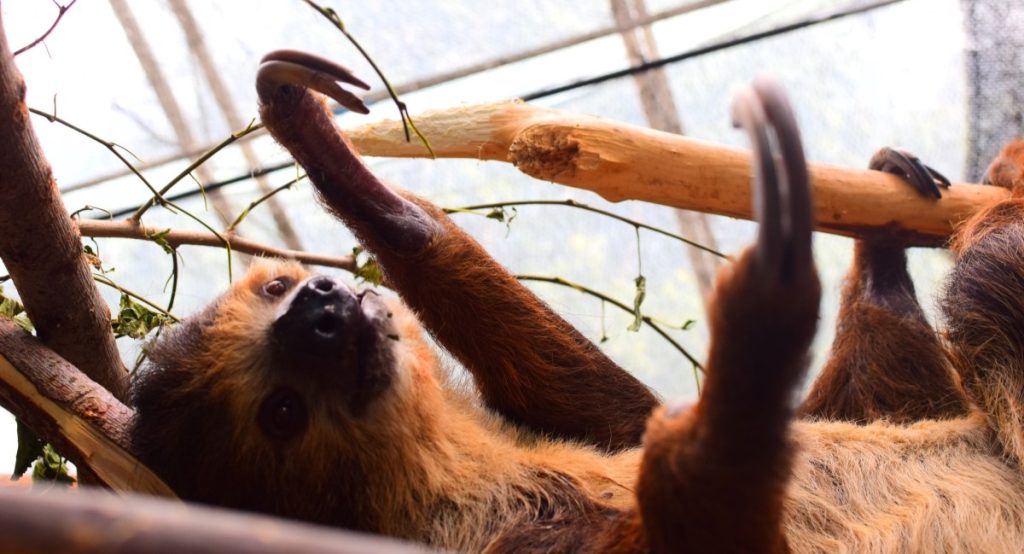 あの有名なナマケモノ。これもズームレンズなし。手で触れるぐらいの距離にナマケモノがいるのやばすぎ。飼育員さんが近くにいるわけでもなくて、お客さんとナマケモノの1対1。貴重な機会だからじっくりとナマケモノを観察しちゃった。
