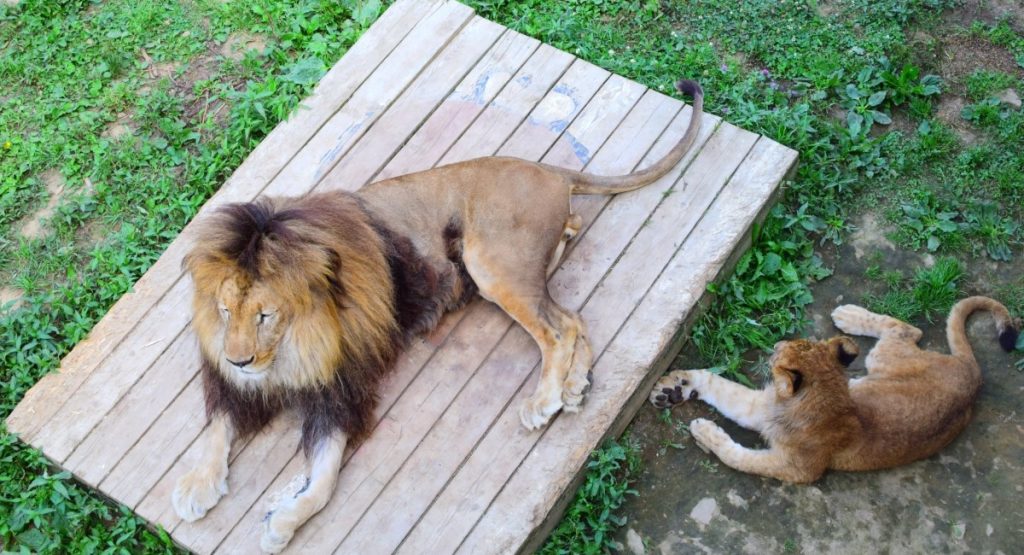 ライオンを上から観察。都会の動物園に比べて広いエリアで飼育されているからのんびりしている姿を観ることができた。こうしてみるとまるで猫。どっからどう見てもおっきい猫。