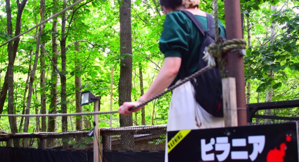 一番怖かったのはピラニア渡り。ピラニアと書かれた看板の横にある橋を渡る。その下は⋯⋯?