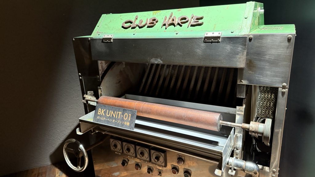 そこでバームクーヘンのパッケージを見たり、年季の入ったバームクーヘンオーブンの1号機を見たりしながら先へ進む。