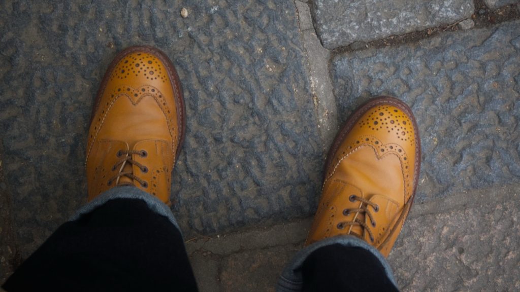 カラーはエイコン・アンティーク。 正直に言えばブラックやマロンの方がどんな服にも合わせやすく使い勝手が良いのは分かっていた。けれど、あえてこの鮮やかなどんぐり色を選んだ。なぜなら、これこそがトリッカーズというブランドを象徴する色であり、私がこの靴に求めたロマンそのものだったから。